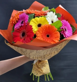 Букет "Гербериус" - воплощение яркости и радости. В нем собраны самые разноцветные герберы - от насыщенной красной и страстной оранжевой до веселой желтой и нежно-розовой. Этот букет подарит вам ощущение летнего солнца, счастья и веселья. Идеальное решение для тех, кто хочет подарить яркую и запоминающуюся композицию. Будьте в центре внимания с этим ярким букетом!